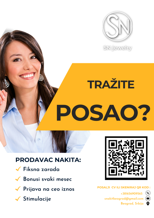 Ako ste vredni, komunikativni i ambiciozni, volite nakit a potreban Vam je posao i želite da postanete deo našeg tima možete poslati biografiju na mail adresu: